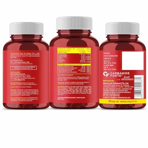 scentflexagro.com > Products > Carbamide Forte Chelated Iron Supplement for Women and Men | Folic Acid Tablets for Pregnancy | Hemoglobin Booster | 100 Veg Tablets for Hair Growth with Iron Bisglycinate