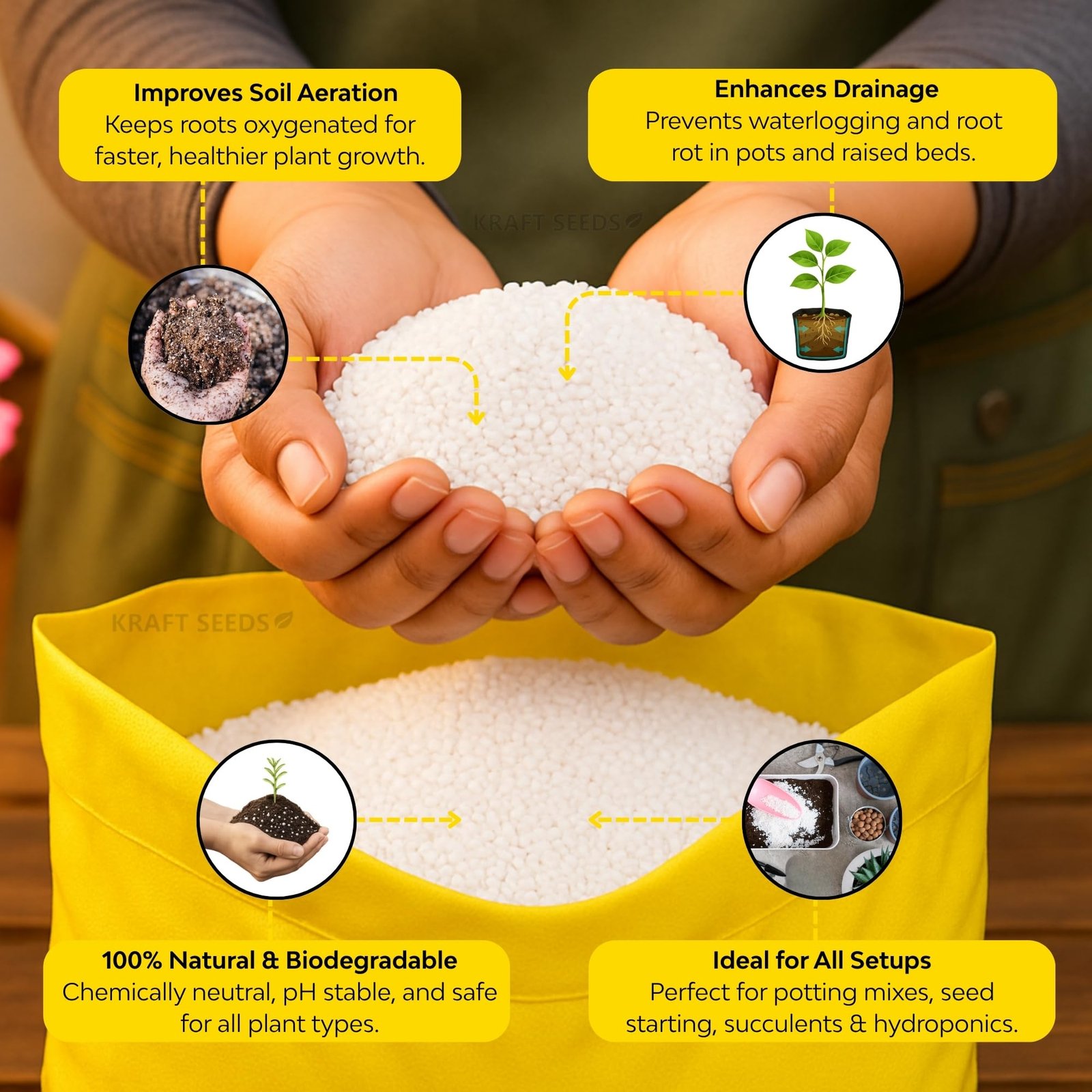 Kraft Seeds Organic Perlite for Plants – 250g Soil Conditioner for Gardening, Potting Mix, Seed Germination, Hydroponics, Improves Drainage & Aeration, Safe & Organic, Multi-Purpose Use