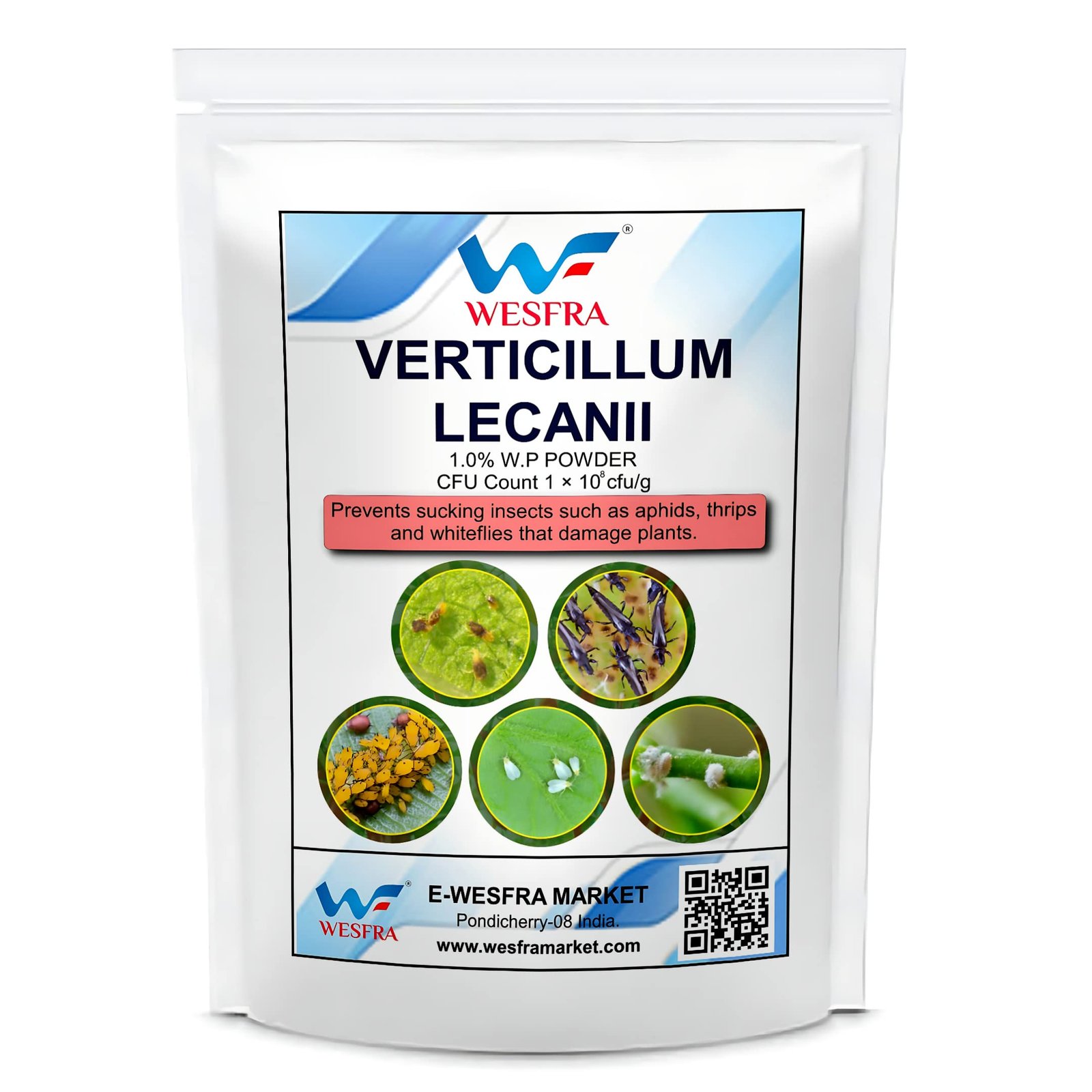 Details: Safeguard your precious crops from the ravages of sap-sucking pests like aphids, thrips, and whiteflies with Verticillium lecanii, a potent yet natural insecticide powder. This 900 gm pack contains a concentrated 1.0% w/p formulation that delivers long-lasting protection against these destructive insects. Verticillium lecanii is a fungus that infects and eradicates harmful insects without harming beneficial ones, making it an eco-conscious choice for organic farming. Simply mix the powder with water and spray it on your plants for effective pest control. Protect your harvest and ensure a bountiful yield with this powerful yet environmentally responsible solution from Wesfra Market.